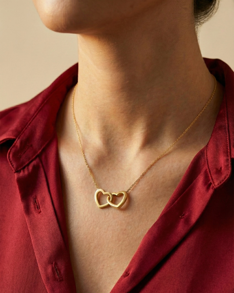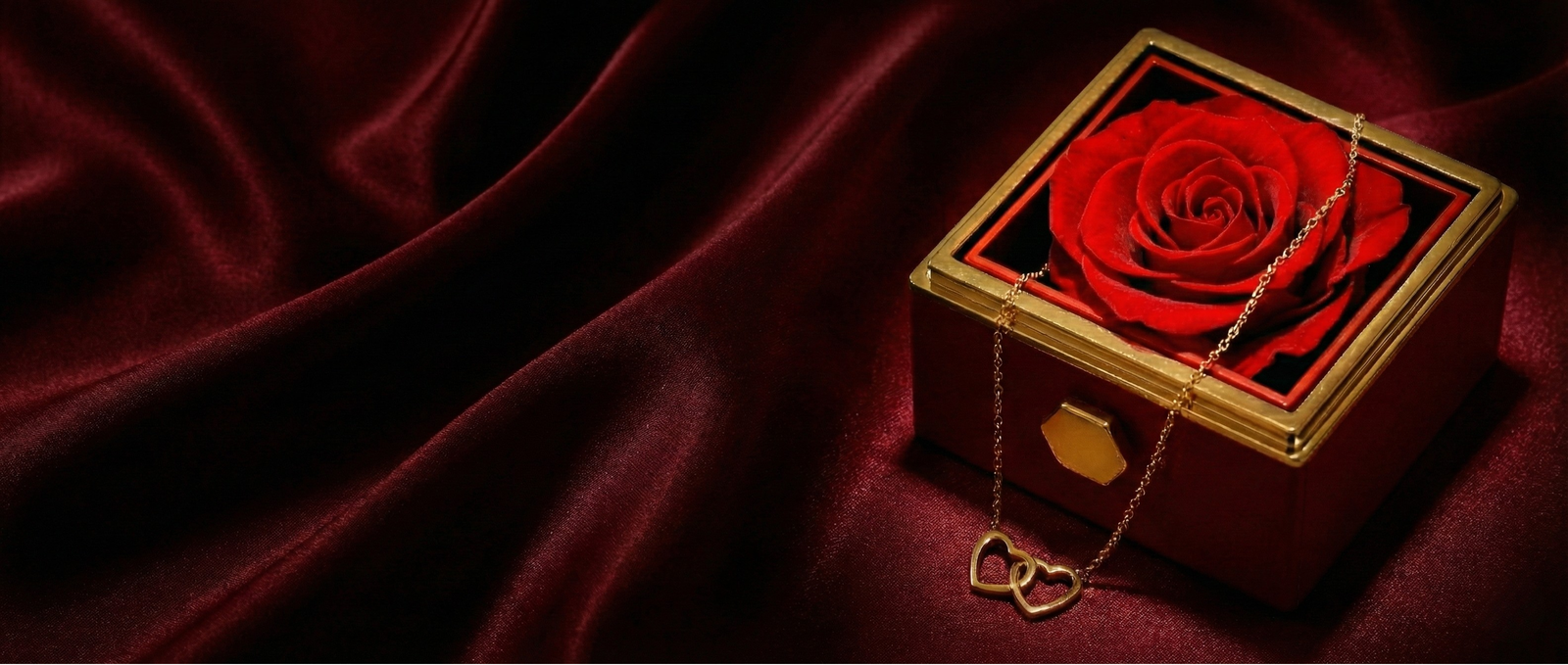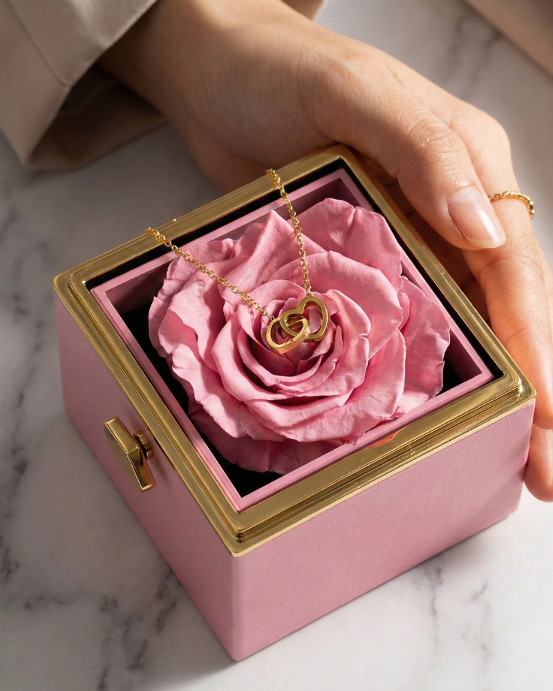 Caja de Regalo de Rosa Eterna con Collar de Doble Corazón